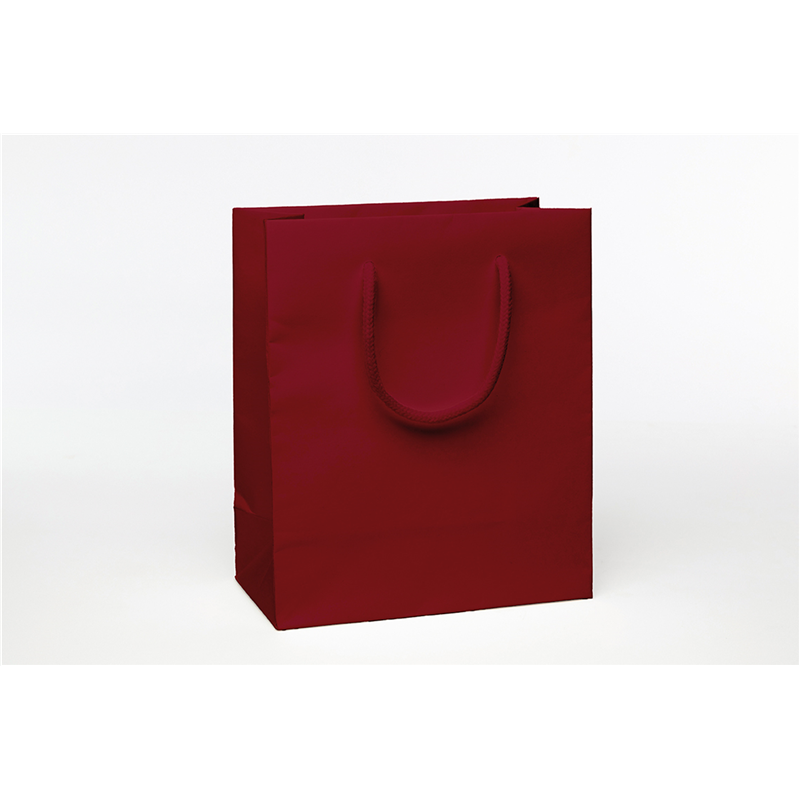 La Busta Shopper Lux misura 24x35+24 cm, è realizzata in carta da 180 grammi con finitura opaca di colore rosso. Fa parte della Selezione Vertecchi.