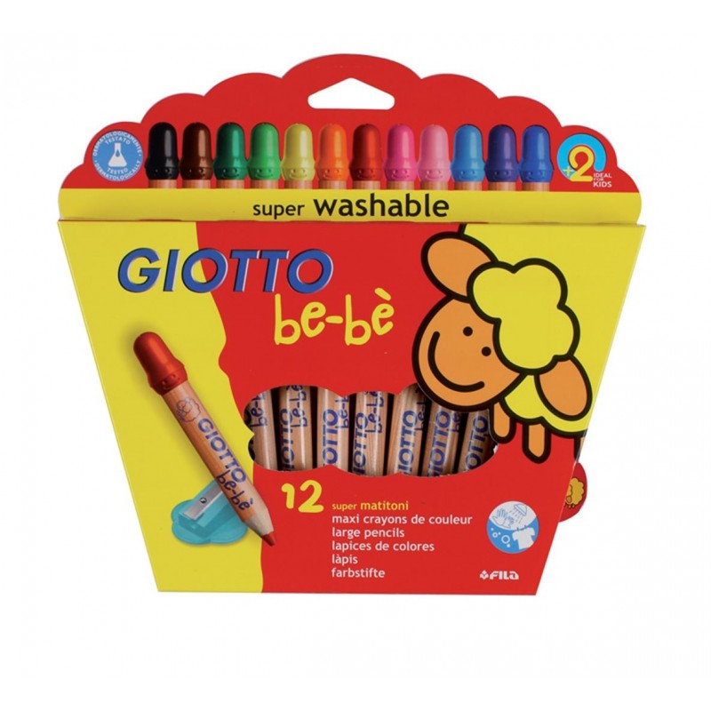 supermatitoni ideali per i piu' piccoli. colori vivaci, morbidi, facili da usare. sicuri, superlavabili, facili da temperare. mina gigante diam. 7mm. fondino di sicurezza in plastica.