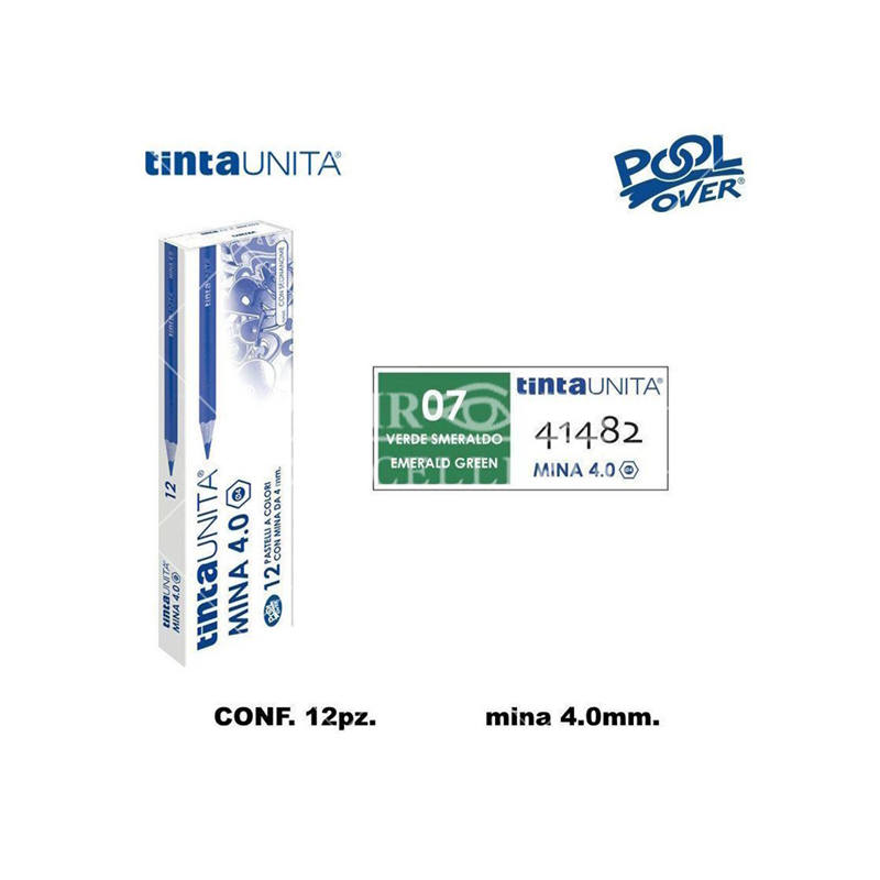 Pastello con mina da 4 mm, colore Verde Smeraldo, caratterizzato da una tonalità intensa e uniforme. La mina offre un'applicazione morbida e precisa, ideale per disegni dettagliati e riempimenti omogenei. Adatto per utilizzo su carta da disegno, cartoncino e superfici simili.