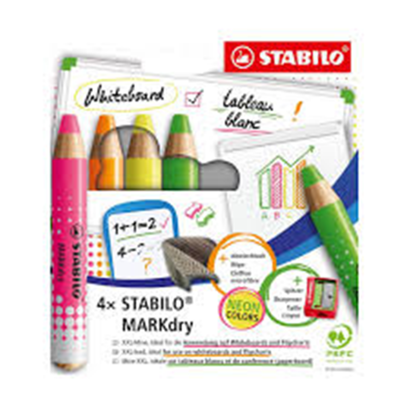 matitone per tutti i tipi di lavagne (bianche, ardesia, a fogli), non secca non macchia, inodore. si cancella con panno asciutto o inumidito. ecosostenibile, 100% legno certificato pefc. il set contiene 4 colori fluorescenti: giallo, rosa, verde, arancione.