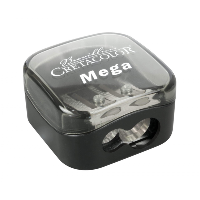 mega duo temperinoadatto per matite mega con diametro massimo della minadi 10 mm. secondo cono appuntitoper matite di grafite e colorate disponibili in commercio. protezione ottimale dalla polvere grazie al riposizionamento del coperchio di 180 °. il coperchio trasparente mostra quando il temperino deve essere svuotato.