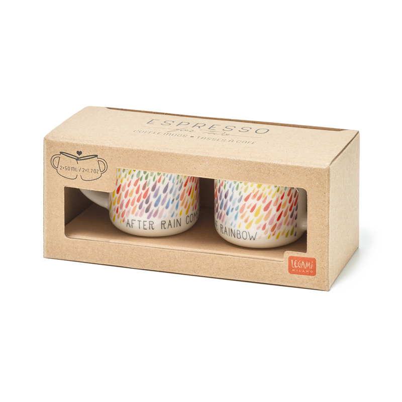 Set di 2 tazzine da caff� Legami, collezione "Espresso For Two After Rain", perfette per condividere un momento speciale. Design elegante e contemporaneo, ideale per gli amanti del caff�. Realizzate con materiali di alta qualit� per garantire durata e resistenza. Confezione regalo inclusa, perfetta per ogni occasione.