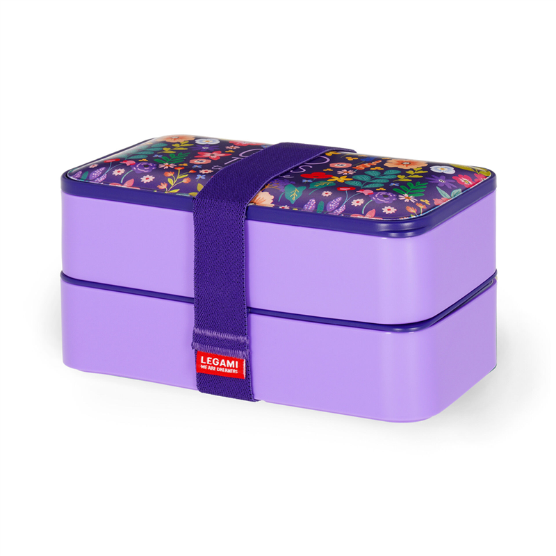 lunch box rettangolare con dimensioni di 18,2x10x10,3 cm, decorato con un motivo a margherite. prodotto da legami, è ideale per trasportare il pranzo in modo pratico e stiloso.