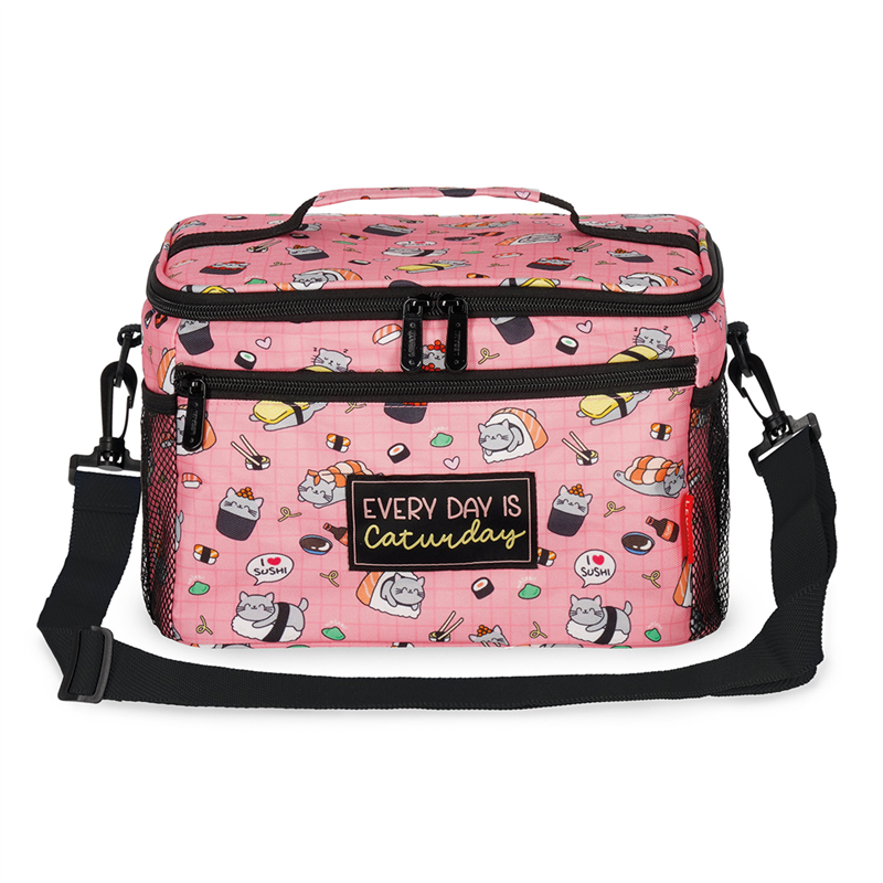 la lunch bag 28x17x15cm legami sushi cat di legami � una borsa termica pratica e stilosa con un design divertente che presenta un gatto ispirato al sushi. ideale per trasportare il pranzo al lavoro, a scuola o per un picnic, � realizzata con materiali di qualit� che aiutano a mantenere il cibo fresco. le dimensioni compatte di 28x17x15 cm la rendono perfetta per contenere pasti e snack, mentre il suo aspetto accattivante la rende un accessorio distintivo.