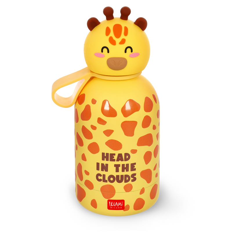 La Kids Bottle Giraffe di Legami è una bottiglia per bambini caratterizzata da un design colorato e giocoso con un motivo di giraffa. È realizzata con materiali sicuri e resistenti, ideale per l'uso quotidiano a scuola o durante le attività all'aperto. La bottiglia è progettata per essere facilmente maneggevole dai più piccoli e potrebbe includere una chiusura a prova di perdita per mantenere le bevande al sicuro.