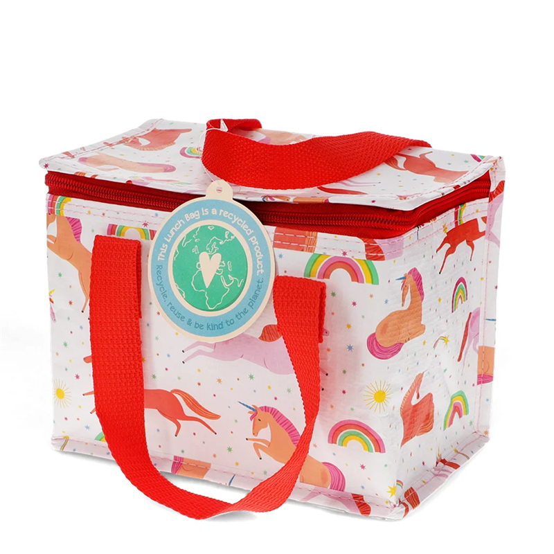 Borsa termica con maniglie e zip, dimensioni 13x21x16 cm, decorata con un tema unicorni. Perfetta per mantenere il cibo o le bevande alla giusta temperatura durante i viaggi o i picnic.