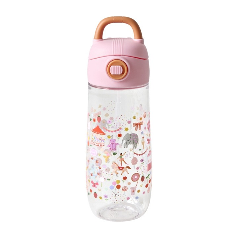 borraccia da 500 ml realizzata in tritano con coperchio in pe, alta 21 cm, dotata di cannuccia integrata. presenta una stampa di draghi su sfondo blu. marca: rice.