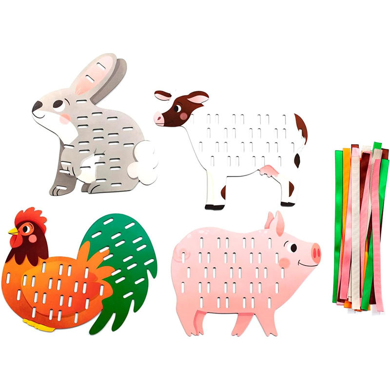 ideale per aiutare il bambino a sviluppare la sua manualità! l’astuccio contiene 4 animali in cartone pre-tagliati e pre-forati. 23 nastri da 18 cm (5 colori), adesivi trasparenti, istruzioni. età 4+. 21,2 x 1 x 19,2 cm