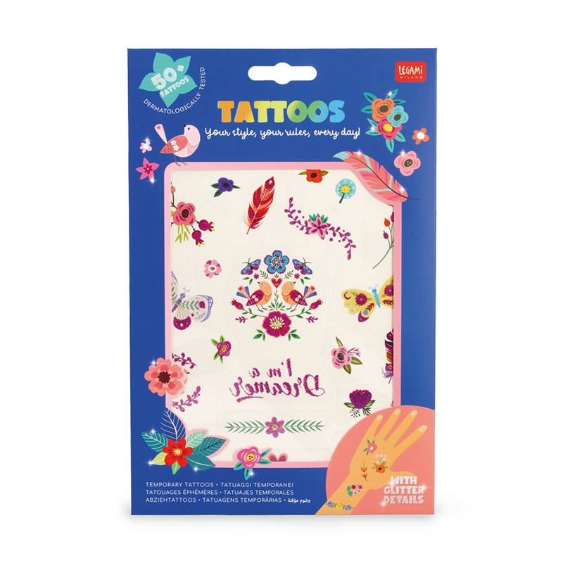 Tatuaggi Temporanei Flowers di Legami sono decorazioni cutanee ideali per esprimere la tua creatività e personalità in modo non permanente. Ogni confezione include una varietà di disegni floreali intricati e colorati, perfetti per aggiungere un tocco di eleganza e naturalezza al tuo look quotidiano. Facili da applicare e rimuovere, questi tatuaggi sono sicuri per la pelle e resistenti all'acqua, garantendo una durata ottimale per diversi giorni. Perfetti per qualsiasi occasione, permettono di sperimentare con stili diversi senza impegno a lungo termine.