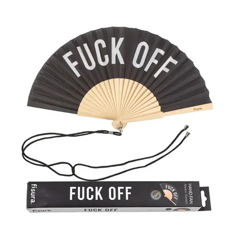 il ventaglio fisura 'fuck off' - black è un accessorio audace e distintivo, caratterizzato da un design nero elegante con l'espressione provocatoria "fuck off" stampata. questo ventaglio unisce funzionalità e stile, ideale per chi desidera esprimere la propria personalità con un tocco di irriverenza. realizzato con materiali di qualità, è perfetto per rinfrescarsi con un atteggiamento deciso.