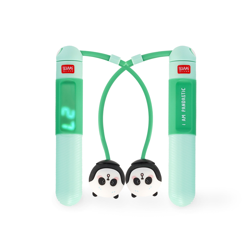 La Corda Per Saltare Senza Fili - Jump Around Panda di Legami è un attrezzo fitness innovativo che consente di allenarsi senza l'ingombro di una corda fisica, ideale per esercizi di cardio e resistenza in spazi ristretti. Dotata di manici ergonomici con impugnature antiscivolo e un design accattivante con motivi di panda, offre un'esperienza di allenamento confortevole e divertente.