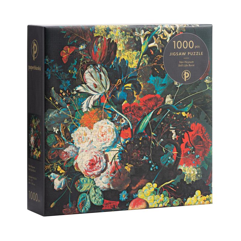 Puzzle da 1000 pezzi raffigurante un'opera artistica di Jan van Huysum, dimensioni finali 507x685 mm, prodotto da Paperblanks.