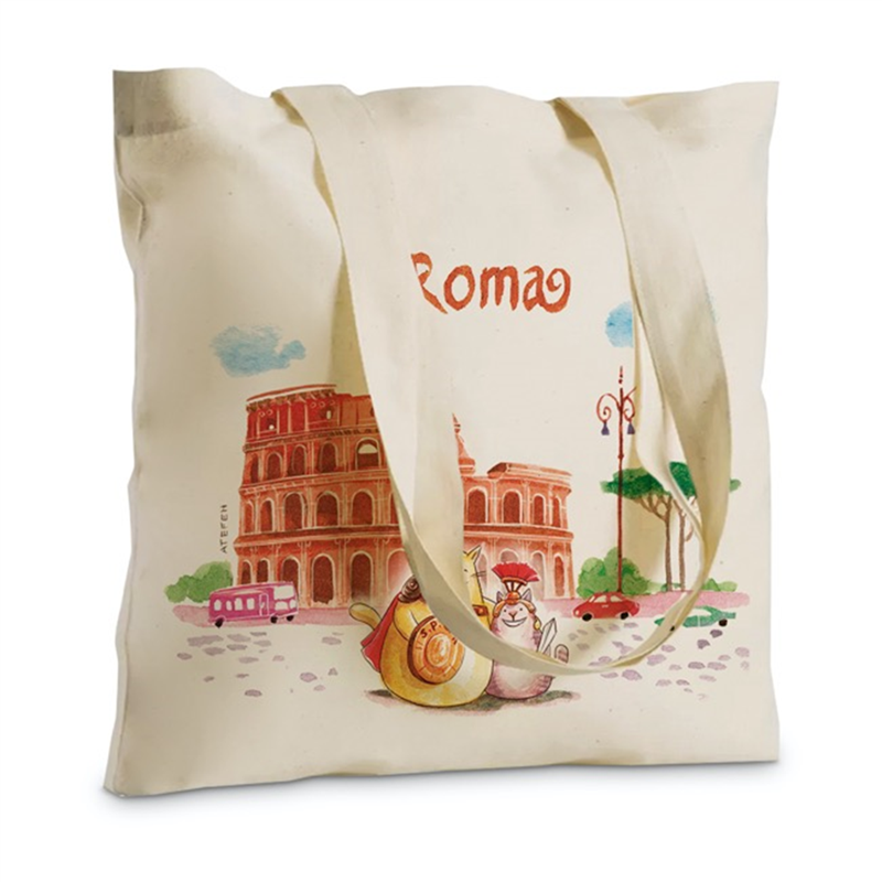 Shopper in cotone di dimensioni 42x42 cm, decorata con un design unico ispirato a Roma. Presenta una vivace illustrazione del Colosseo accompagnato da gatti vestiti da gladiatori, unendo elementi iconici della citt� con un tocco di originalit� e simpatia. Parte della selezione Vertecchi, � perfetta per chi ama portare con s� un pezzo di storia e cultura romana in modo pratico ed ecologico.
