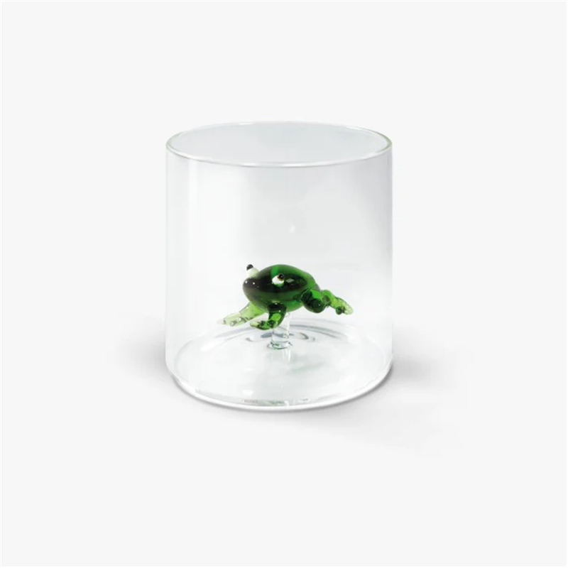 rendi unica la tua tavola con questo bicchiere artigianale in vetro borosilicato, caratterizzato da una decorazione interna a forma di rana. con una capienza di 250 ml, è ideale per acqua, succhi, tè o altre bevande, unendo estetica, originalità e funzionalità quotidiana.