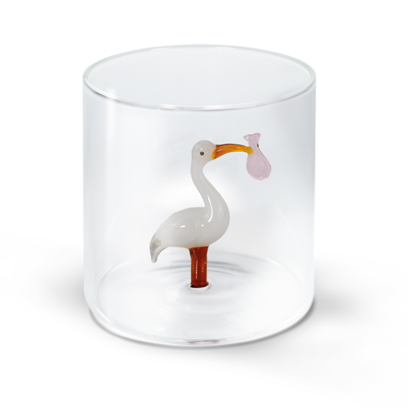 Bicchiere Vetro Con Deco Interno 250ml Wd Cicogna Fagotto Rosa | Wd Lifestyle