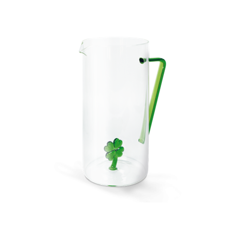 La caraffa in vetro da 1,2 litri di WD Lifestyle presenta un elegante decoro interno con motivo a quadrifoglio, unendo funzionalit� e stile per arricchire la tua tavola con un tocco distintivo e raffinato.