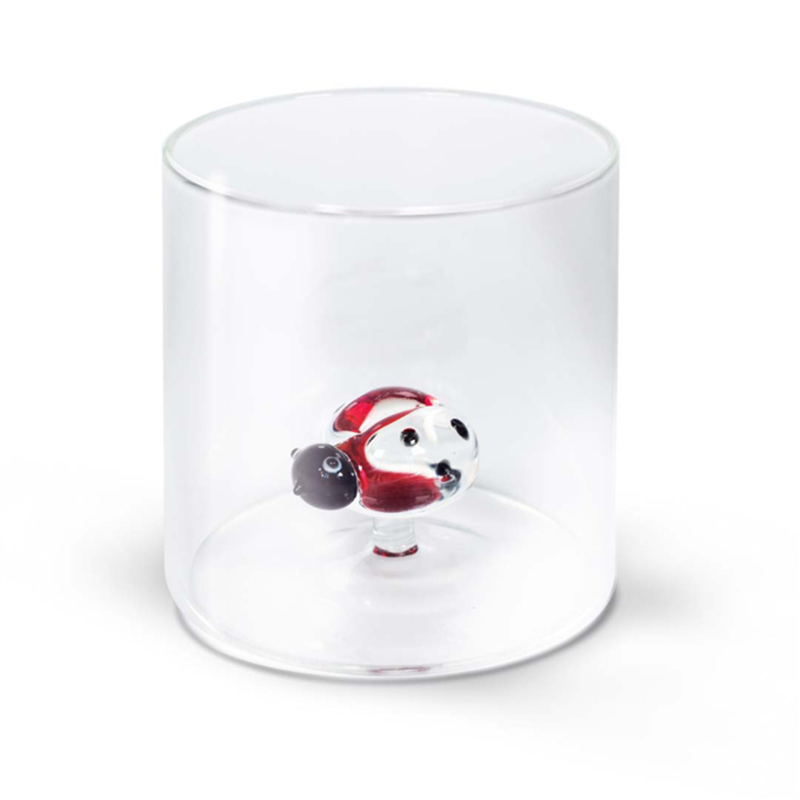 Bicchiere in vetro da 250 ml con decorazione interna raffigurante una coccinella, appartenente alla collezione Wd Lifestyle.