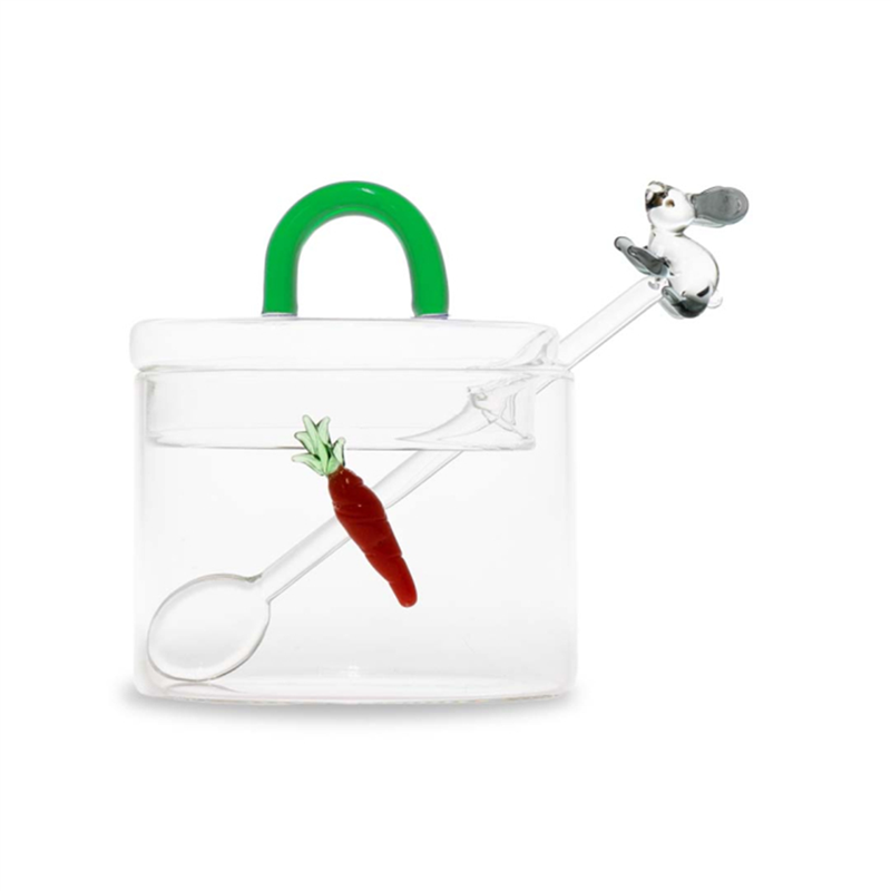 La zuccheriera in vetro di WD Lifestyle presenta un design elegante arricchito da decori a forma di coniglio, perfetta per aggiungere un tocco di dolcezza alla tua tavola. Include un pratico cucchiaino abbinato per servire lo zucchero con stile.