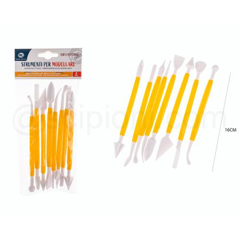 Il Set 8 Strumenti Per Modellare In Plastica è composto da strumenti realizzati in plastica resistente, progettati per modellare e scolpire materiali come argilla, plastilina e altri composti per modellismo. Ogni strumento offre diverse punte e forme, tra cui spatole, coltelli, punte a sfera e strumenti a doppia estremità, per consentire precisione e varietà nelle lavorazioni. Questi strumenti sono leggeri, facili da pulire e ideali per artisti, scultori e hobbisti.