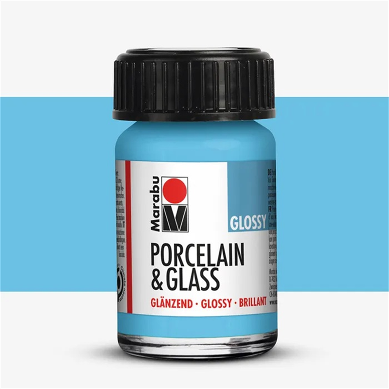 colore a base d'acqua per porcellana e vetro, finitura lucida, tonalità celeste, flacone da 15 ml, adatto per superfici non porose, resistente al lavaggio in lavastoviglie dopo la cottura a 160°c per 30 minuti, ideale per decorazioni permanenti su ceramica, vetro e metallo.