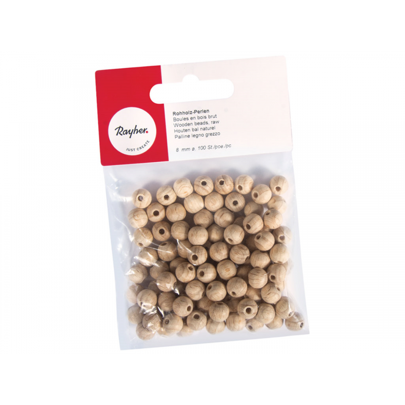 Palline di legno di diametro 8 mm, confezionate in blister da 100 pezzi, prodotte da Rayher. Realizzate con legno di alta qualit�, ideali per progetti di artigianato, decorazioni e bijoux. Superficie liscia per una facile verniciatura o personalizzazione.