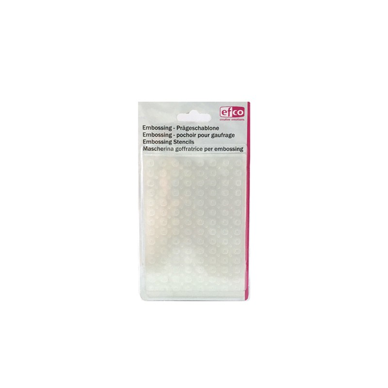Stencil per embossing di dimensioni 106x150 mm, progettato con un motivo a puntini sul retro. Realizzato da Efco, questo stencil è ideale per aggiungere texture e dettagli in rilievo a progetti di artigianato, come biglietti, scrapbooking e altre creazioni artistiche. Realizzato in materiale resistente, garantisce precisione e facilità d'uso.
