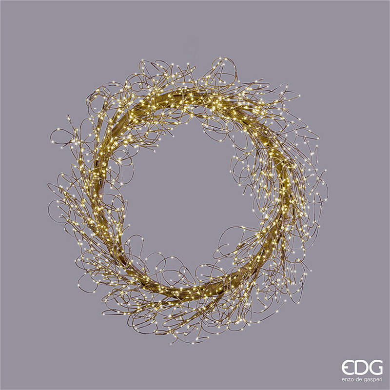 La Corona Led Lumiere di Enzo De Gasperi è un'elegante decorazione luminosa caratterizzata da 1800 microLED, con un diametro di 75 cm e una finitura color marrone. È ideale per creare un'atmosfera calda e accogliente in vari ambienti, grazie al suo design raffinato e alla distribuzione uniforme delle luci.