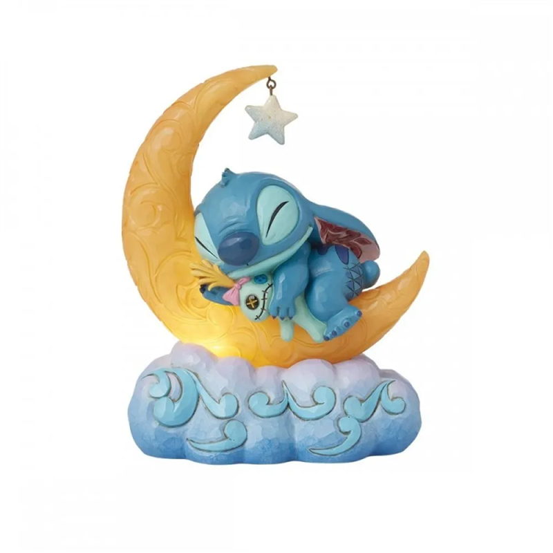 La statuina "Stitch & Scrump On Moon" di Jim Shore per Enesco raffigura il personaggio di Stitch seduto su una luna, accompagnato dal suo amico Scrump. Realizzata in resina di alta qualità, la statuina combina l'estetica tradizionale di Jim Shore con dettagli intricati e colori vivaci. La luna è decorata con motivi ispirati all'arte folk, mentre Stitch e Scrump sono rappresentati in pose giocose e affettuose. Questa statuina è ideale per collezionisti e fan del film Disney "Lilo & Stitch".