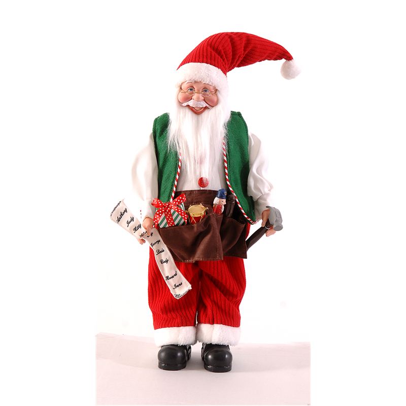 Babbo Natale con grembiule � una decorazione natalizia alta 61 cm, caratterizzata dai tradizionali colori rosso, bianco e verde. Indossa un grembiule con tasche piene di utensili, dando un tocco di artigianalit� e calore alla figura. Perfetto per arricchire l'atmosfera natalizia della casa con un elemento festoso e accogliente.