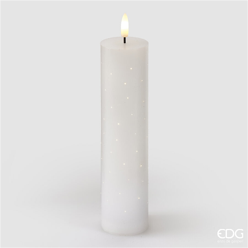 Candela LED Starry Slim, altezza 20 cm, diametro 5 cm, color avorio, alimentata a batteria, dotata di telecomando, marchio EDG - Enzo De Gasperi.