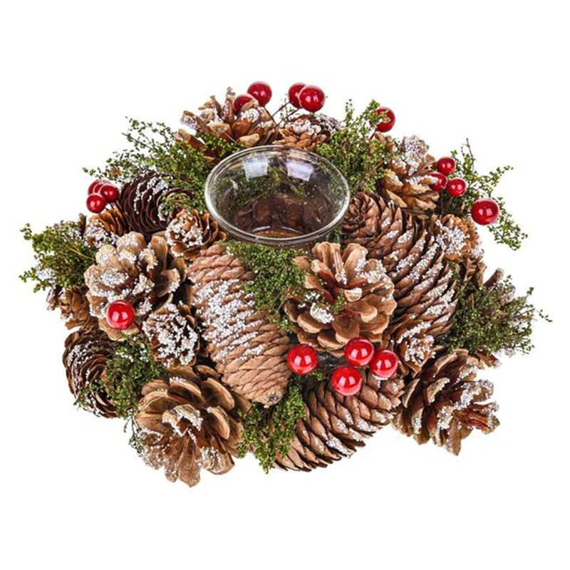 il portacandela è un elegante centro tavola dal design festivo, caratterizzato da pigne e bacche con finitura glitterata che aggiunge un tocco scintillante all'ambiente. con un diametro di 22 cm, questo accessorio decorativo è perfetto per creare un'atmosfera accogliente durante le festività. le tonalità rosse e bianche si combinano armoniosamente, rendendolo un complemento ideale per qualsiasi arredamento natalizio.