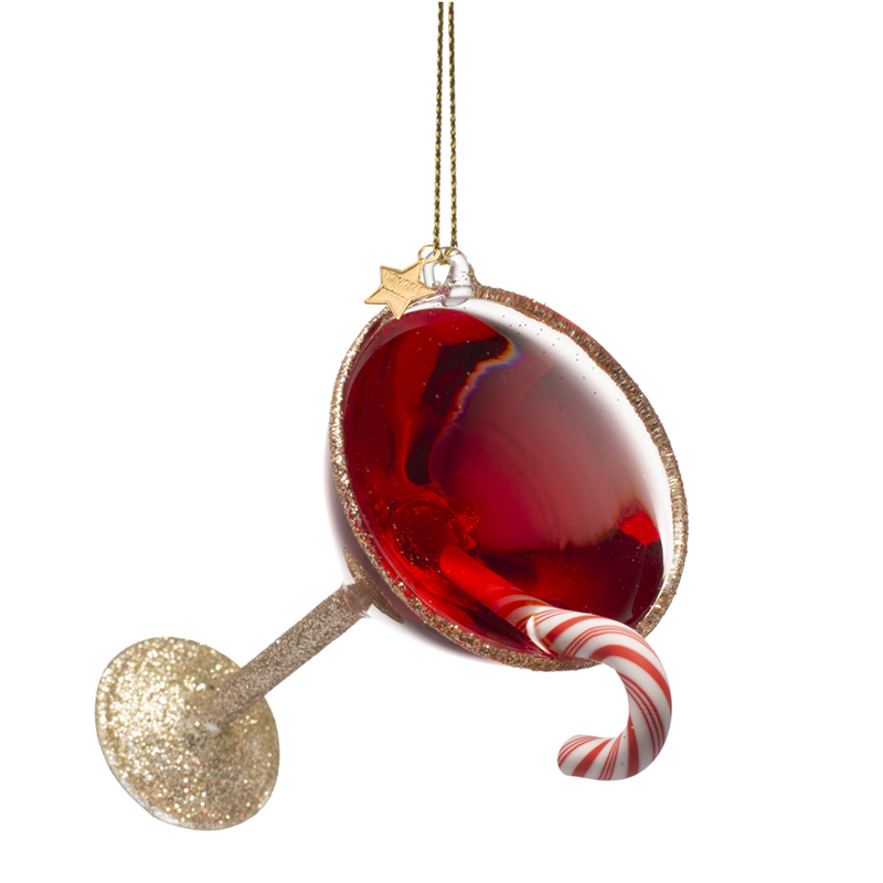 Ornamento in vetro a forma di cocktail natalizio, alto 9 cm, di colore rosso. Perfetto per aggiungere un tocco festoso e originale al tuo albero di Natale.