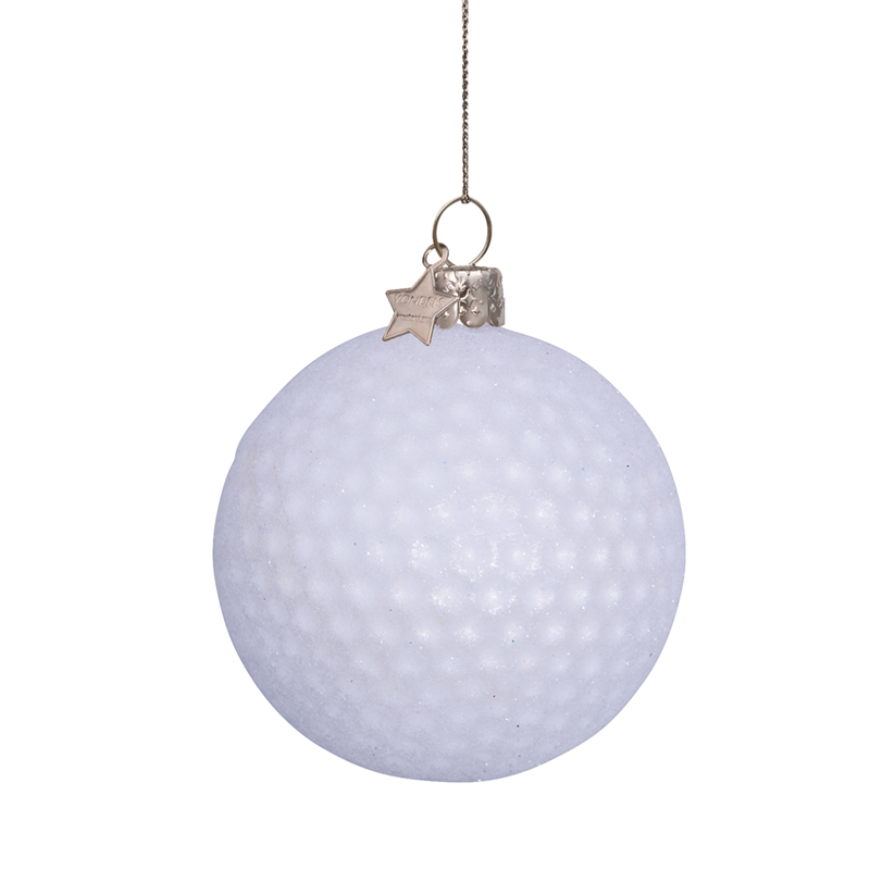 Ornamento in vetro a forma di pallina da golf, di colore bianco, con un'altezza di 8 cm, ideale per chi ama lo sport e desidera aggiungere un tocco unico e sportivo al proprio albero di Natale o alle decorazioni festive.