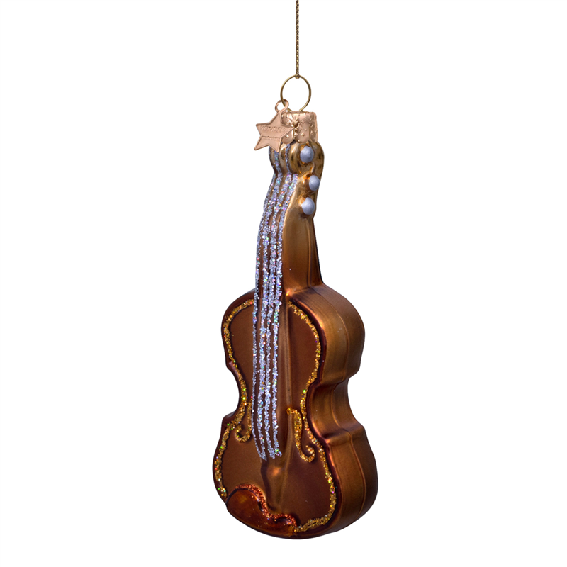 Ornamento in vetro a forma di violino, alto 9,5 cm, di colore marrone, ideale per decorazioni eleganti e sofisticate. Perfetto per aggiungere un tocco musicale e raffinato a qualsiasi ambiente o albero di Natale. Realizzato con attenzione ai dettagli per un aspetto realistico e un'elevata qualità artigianale.