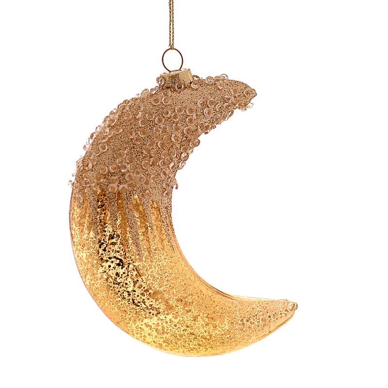 L'ornamento in vetro "Luna Gold Diamonds" � un elegante pezzo decorativo alto 13 cm. Realizzato con maestria, presenta dettagli dorati e un design che ricorda la luna, arricchito da elementi che imitano i diamanti, conferendo un tocco di lusso e raffinatezza a qualsiasi ambiente.