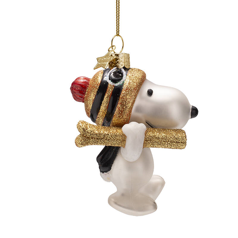 Ornamento in vetro soffiato a mano raffigurante Snoopy in versione sciistica. Realizzato in edizione limitata per la collezione natalizia di Vertecchi, questo pezzo esclusivo unisce artigianalità e design iconico. Perfetto per decorare l'albero di Natale con un tocco di eleganza e originalità, è impreziosito da dettagli dipinti a mano che catturano l'essenza del personaggio amato da tutti. Un'aggiunta unica per collezionisti e appassionati del celebre beagle.