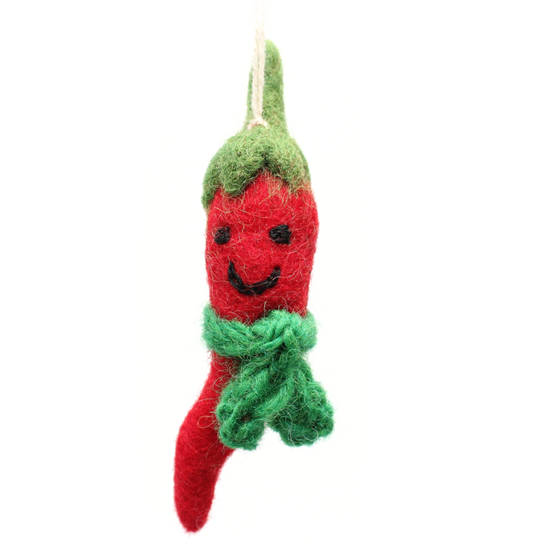 L'ornamento in feltro a forma di peperoncino è un'aggiunta vivace e giocosa a qualsiasi decorazione. Realizzato con attenzione ai dettagli, questo ornamento presenta un design colorato e accattivante. Il peperoncino è avvolto in una sciarpa che aggiunge un tocco di calore e personalità. Perfetto per decorare alberi di Natale, spazi interni o come regalo unico, questo ornamento combina artigianalità e allegria, rendendolo un pezzo ideale per chi ama i dettagli spiritosi e originali.