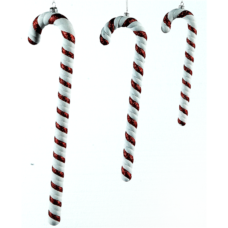 ornamento a forma di bastoncino di zucchero realizzato in pvc, con colori rosso e bianco. misura 25 cm ed è ideale per decorazioni natalizie, aggiungendo un tocco festivo e tradizionale agli ambienti.