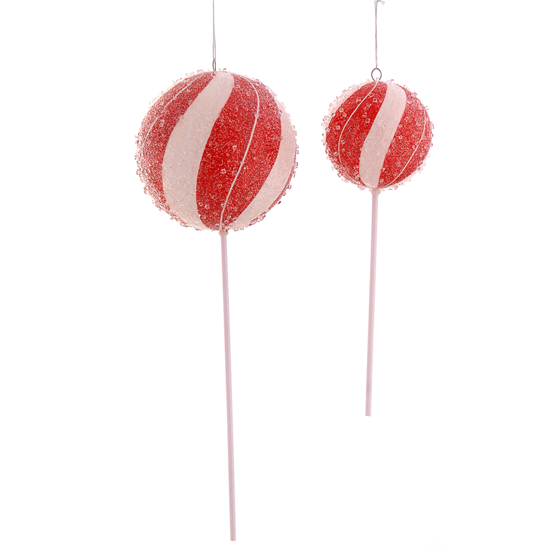 ornamento in pvc a forma di lecca-lecca, decorato con perline, di dimensioni 20 cm. caratterizzato da colori rosso e bianco, ideale per aggiungere un tocco festoso e vivace a decorazioni natalizie o altre occasioni speciali.