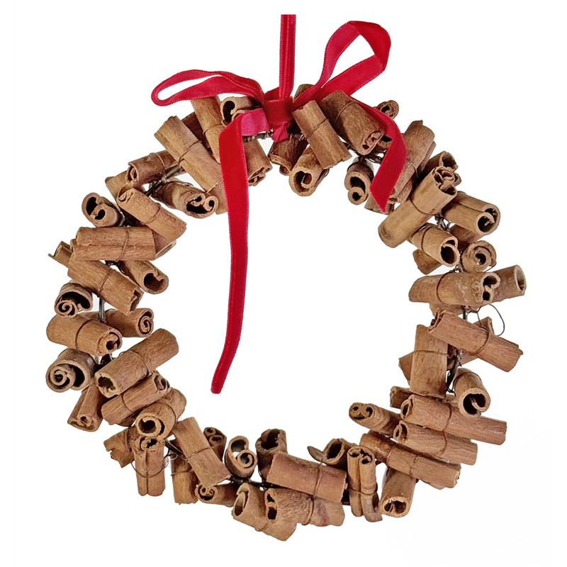 L'Ornamento Coroncina Cannella con Fiocco da 20 cm è un elegante e profumato accessorio decorativo, perfetto per aggiungere un tocco di calore e atmosfera natalizia alla tua casa. Realizzata con bastoncini di cannella intrecciati e decorata con un raffinato fiocco, questa coroncina emana un aroma avvolgente e naturale, ideale per creare un ambiente accogliente e festoso. Può essere appesa a porte, finestre o pareti, rendendola una scelta versatile per la decorazione stagionale.