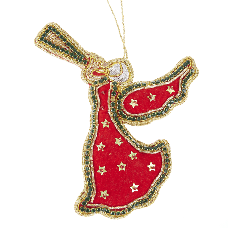 Ornamento Angelo Decorato in tonalità rosso e oro, arricchito con perline eleganti, parte della Selezione Vertecchi. Questo ornamento aggiunge un tocco di raffinatezza e festa a qualsiasi ambiente, perfetto per decorazioni natalizie e altre occasioni speciali.