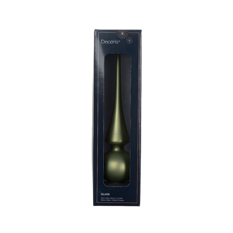 Puntale in vetro di colore verde rosmarino opaco, con un diametro di 6 cm e un'altezza di 26 cm, della marca Decoris.