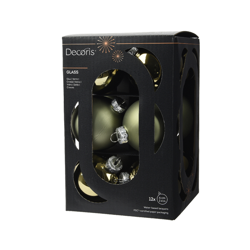 Sfera Vetro D6cm 12pz Mix Rosemary Green Opaco E Lucido | Decoris