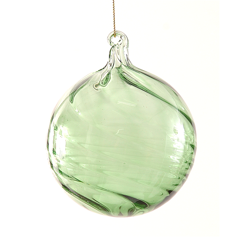 La sfera in vetro trasparente con un diametro di 12 cm presenta una tonalit� verde chiaro. La sua superficie liscia e lucida riflette la luce in modo elegante, rendendola un oggetto decorativo ideale per interni moderni e sofisticati. Questa sfera pu� essere utilizzata come centrotavola, elemento decorativo per scaffali o inserita in composizioni artistiche per aggiungere un tocco di colore e raffinatezza allo spazio circostante.