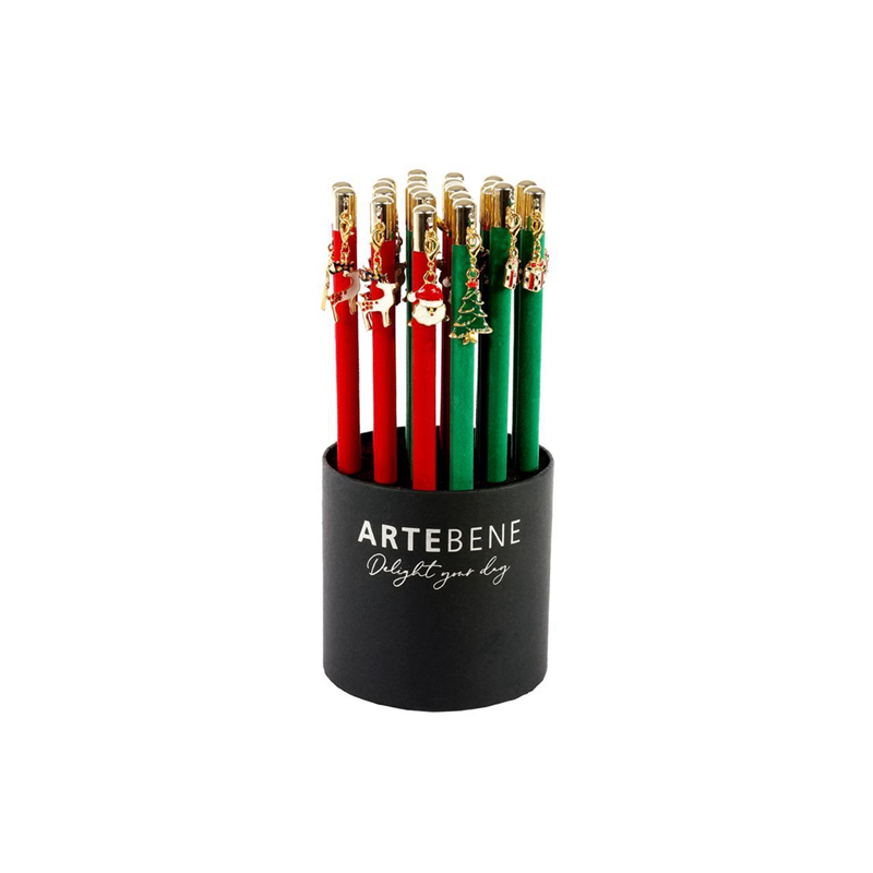 Matita di 18 cm decorata con applicazioni natalizie, ideale per aggiungere un tocco festivo alla tua scrivania o come regalo per le festività. Marca: Artebene.