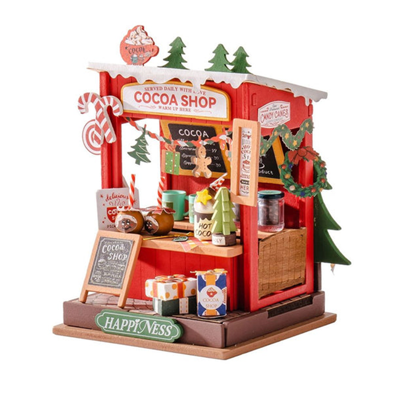 Il Kit Casa Fai Da Te Legno Miniatura Natale Cocoa Shop di Rolife è un affascinante set che consente di costruire una dettagliata scena in miniatura di un negozio di cioccolato a tema natalizio. Realizzato con materiali di alta qualità, il kit include componenti in legno pretagliati, mobili in miniatura, decorazioni natalizie e luci a LED per creare un'atmosfera accogliente e festosa. Ogni elemento è progettato per essere assemblato facilmente, offrendo un'attività creativa e rilassante. Una volta completato, il Cocoa Shop diventa un incantevole pezzo da esposizione o un regalo perfetto per gli amanti del fai-da-te e del Natale.