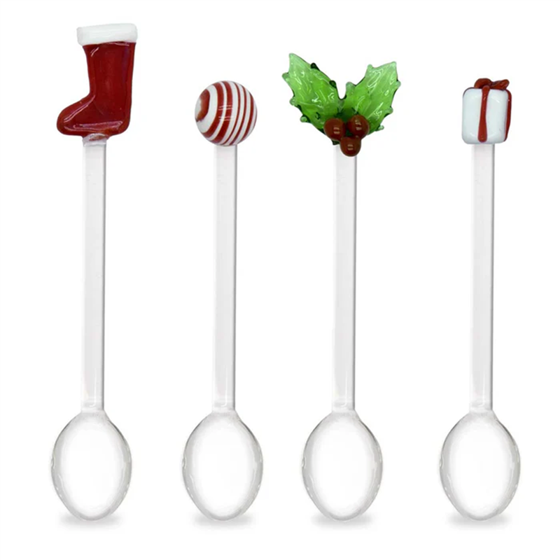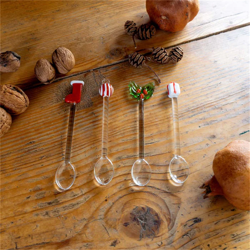 Cucchiaini Da Caff� In Vetro Soffiato Con Decoro Natalizio Set Da 4 | Wd Lifestyle