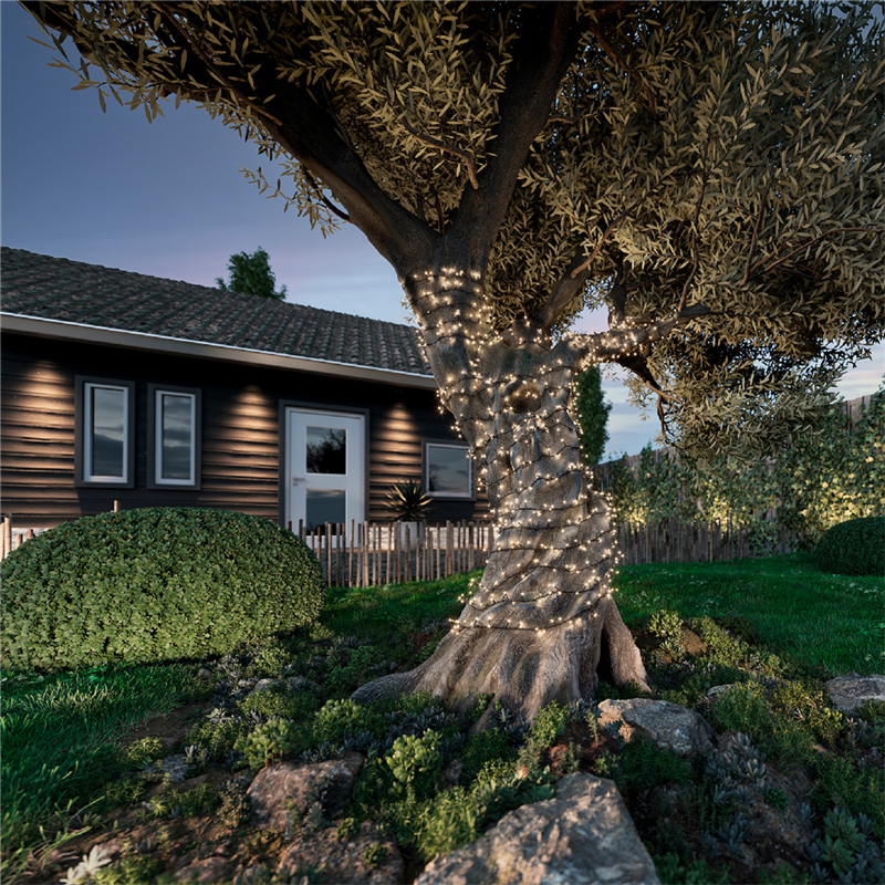 Filo 500led 11mt Solare Durata 6 Ore Filo Nero-Luce Bianca Calda-Da Esterno | Lumineo