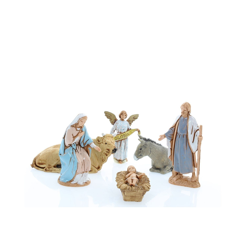 Set di statuine da 6 pezzi per il presepe, con figure alte 6,5 cm, realizzate con dettagli accurati e materiali di qualit�. Le statuine rappresentano i personaggi classici della Nativit�, ideali per arricchire e decorare la scena natalizia.