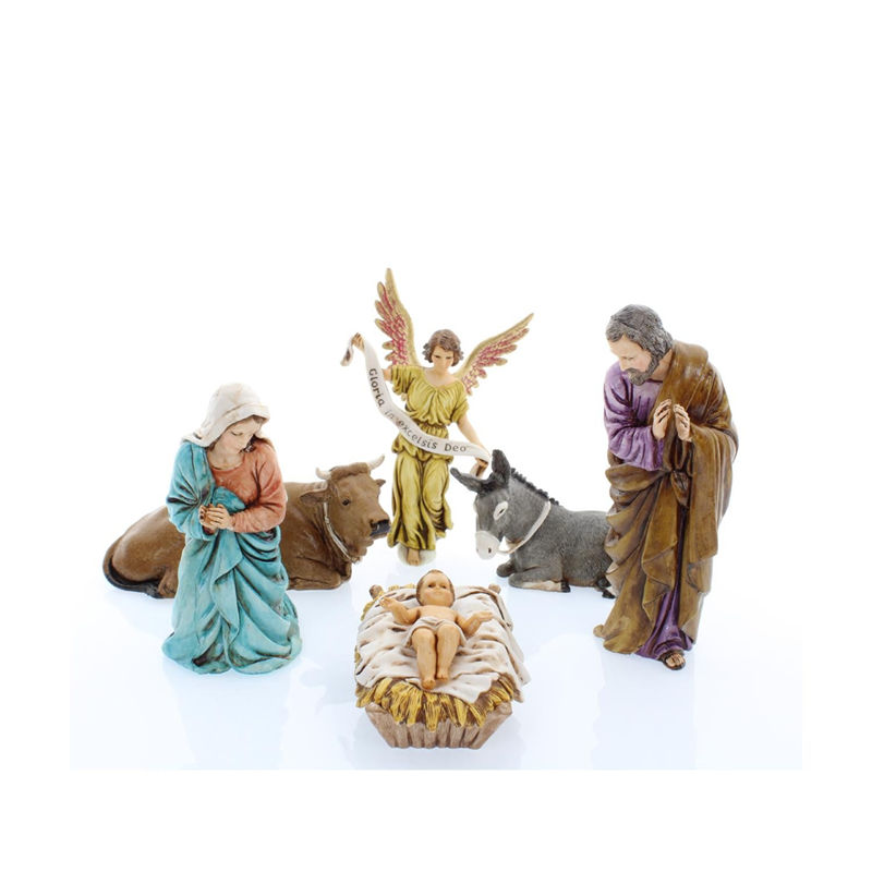 Set di statuine da 13 cm composto da 6 pezzi raffiguranti la Nativit�. Ogni figura � dettagliata e rifinita con cura, rappresentando la scena del presepe tradizionale con Maria, Giuseppe, Ges� Bambino, i Re Magi e il bue e l'asinello. Realizzate con materiali di alta qualit�, queste statuine sono perfette per creare un'atmosfera natalizia autentica e suggestiva.